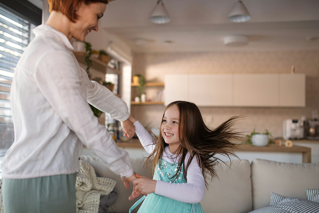 Clear the living room. Turn on music. Let everyone dance. Start with the fun songs, letting the kids be silly and laughter spill over.