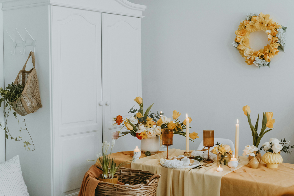 Decorating with fresh flowers is always an easy go-to decorating tactic. My mom likes to get flowers from Sam’s Club and make bouquets herself. We love buying flowers from Sam’s, as you can get big bunches of flowers and make several bouquets from only a few types of flowers.