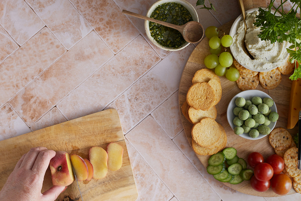 - Decant everything: Move fruit/veg trays, pinwheels, and sliders onto your own platters or boards.