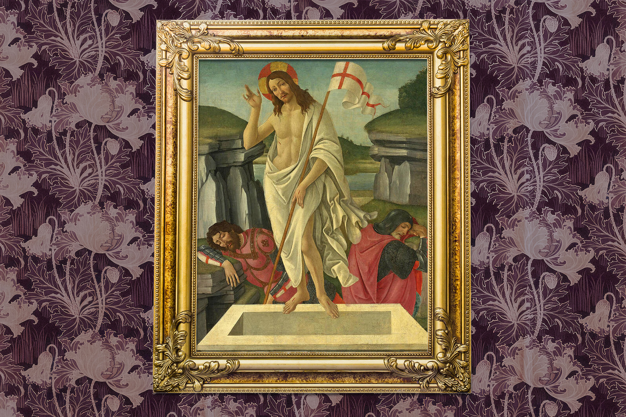 Jesus’ hand is raised in blessing, and his head tilts to the side. His expression is soft and welcoming. The wounds on his hands and feet are visible if you look closely. The wound in his side is exposed as well, but also subtle. In His Resurrection, Christ’s wounds have been made glorious, but Botticelli chooses to emphasize a strong and triumphant Christ rather than expounding on the wounds from the crucifixion. In all, this depiction is victorious yet gentle. It invites us to deepen our trust in the power of the Resurrection.