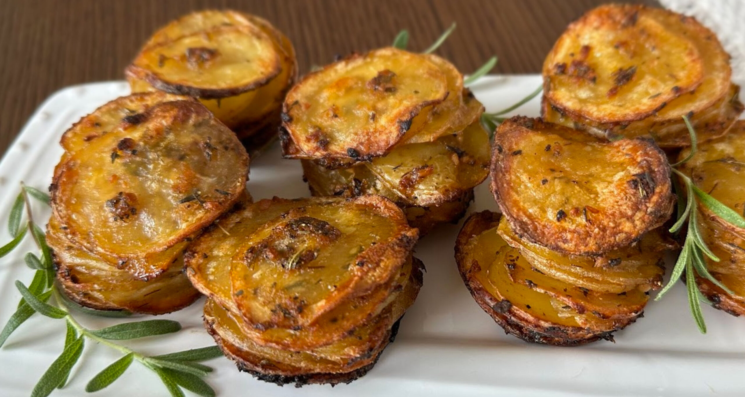Crispy potato stacks are the ultimate blend of comfort and elegance — thinly sliced Yukon gold potatoes layered with buttery herbs and baked until golden and crisp on the edges, yet tender in the middle. Served straight from the muffin tin, these little stacks come out perfectly portioned and irresistibly snackable, making them a fun alternative to traditional mashed or roasted potatoes.