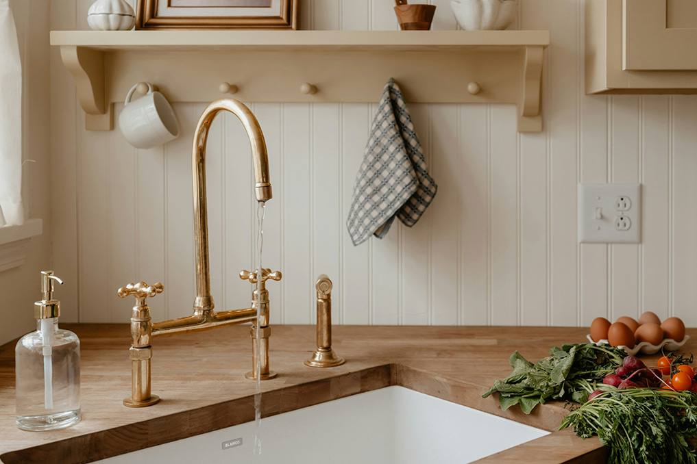 Faucet aerators filter out debris and improve water efficiency. Some facets allow you to screw off the aerator while others are a fixed part of the faucet. If the aerator can be removed, place it in a bowl or bag filled with vinegar. If the aerator cannot be removed, fill a small plastic bag with vinegar and secure it over the faucet opening with a rubber band. Leave the aerator exposed to the vinegar for at least 30 minutes (or overnight!). After cleaning, run hot water through the sink to clear out any remaining particles and to rinse off the vinegar.