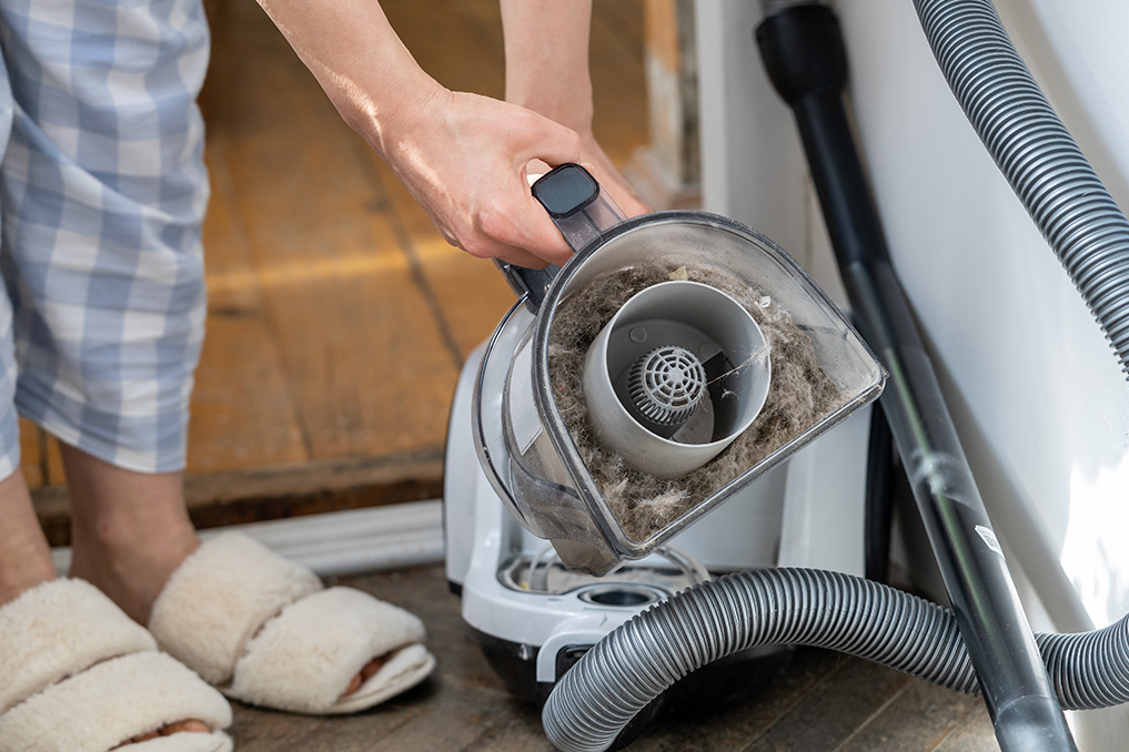 We all feel a little silly when we have to clean the machine that cleans, but it is essential nonetheless! Vacuum filters vary widely; some are washable and others are disposable. HEPA filters cannot be cleaned and must be replaced. Canister vacuums often have a foam filter, which can be washed in the sink with only water (no soap!). Bag vacuums can have reusable or disposable bags, so check on your particular model. While you’re disassembling to remove the filter, use a small utility knife to cut off stubborn hairs that may be obstructing the rotors.