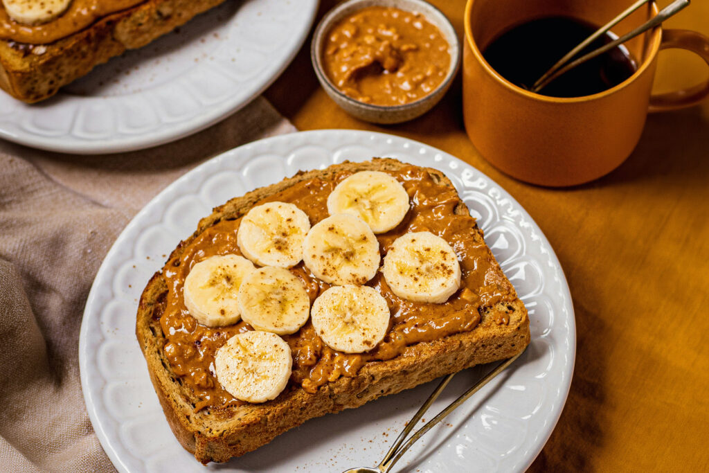 • Breakfast A: One slice of toast with peanut butter, a banana, and black coffee.