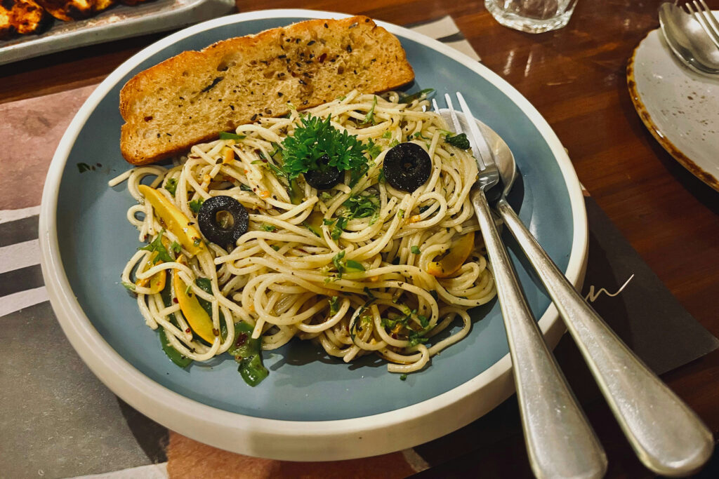 • Dinner C: Vegetable pasta, caesar salad, and sourdough bread.