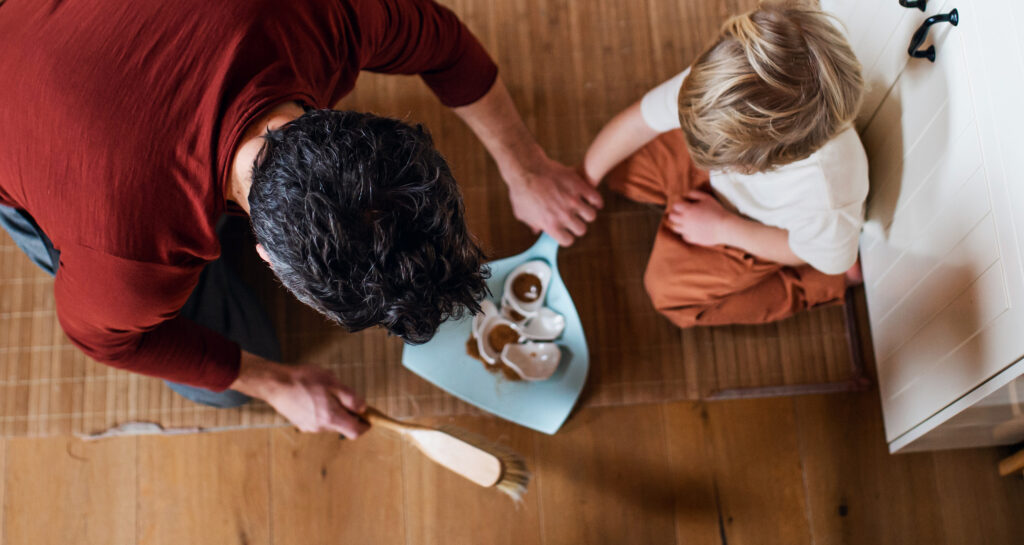 Chores can even become games when you turn them into races, sing songs, or give lots of praise. You get a small hand with the task, and your child gets to feel proud of helping.