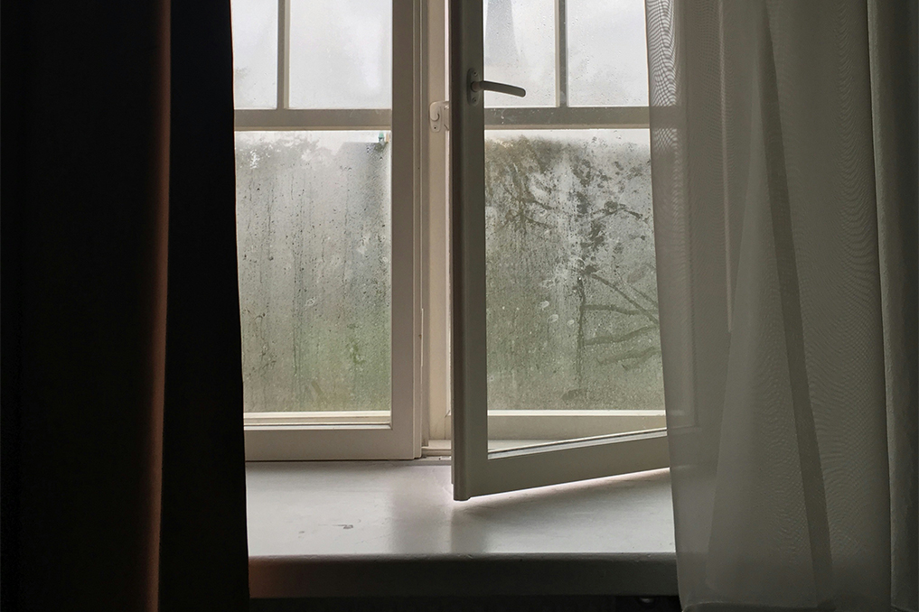The first step is airflow. Prep your space by opening all your windows and doors. It’s crazy how stuffy our spaces can become, especially a tiny dorm room! Opening the doors and windows will help to recycle the old air, and let in some spring and sunshine.