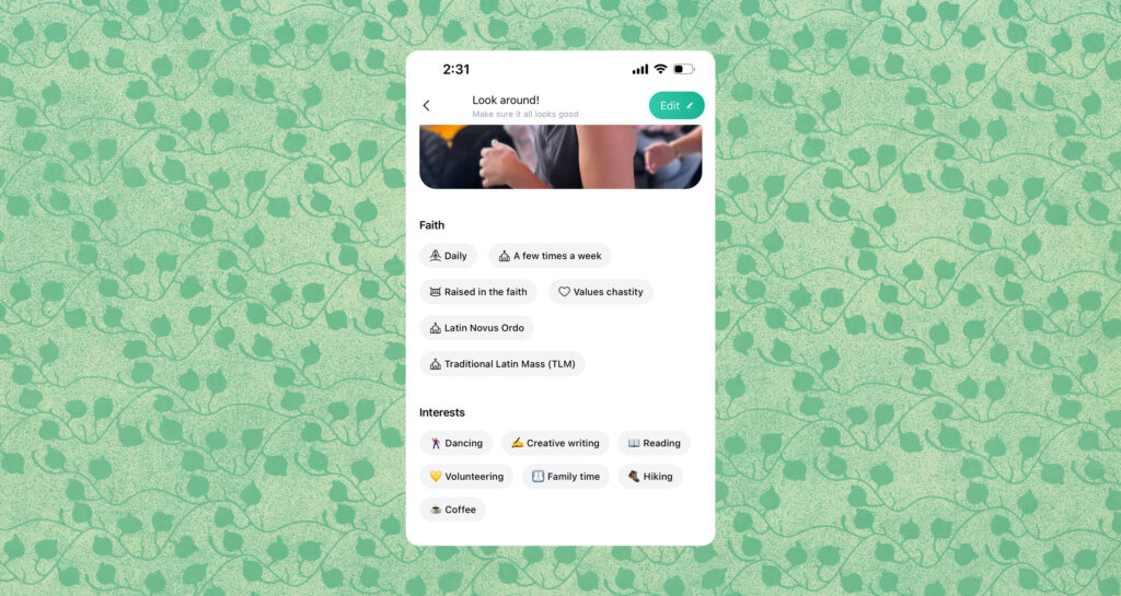 Wilson created a Catholic matchmaking post on social media. Catholic singles dove into the comments, sharing who they are with other like-minded believers. The likes and comments over shared interests turned into conversations with other users off of a single Instagram post from Wilson. It turned into a viral phenomenon leading to hundreds of new couples, 16 engagements, and 20 marriages and counting, according to her website. With this in mind, I figured I could try an online dating app without cringing.
