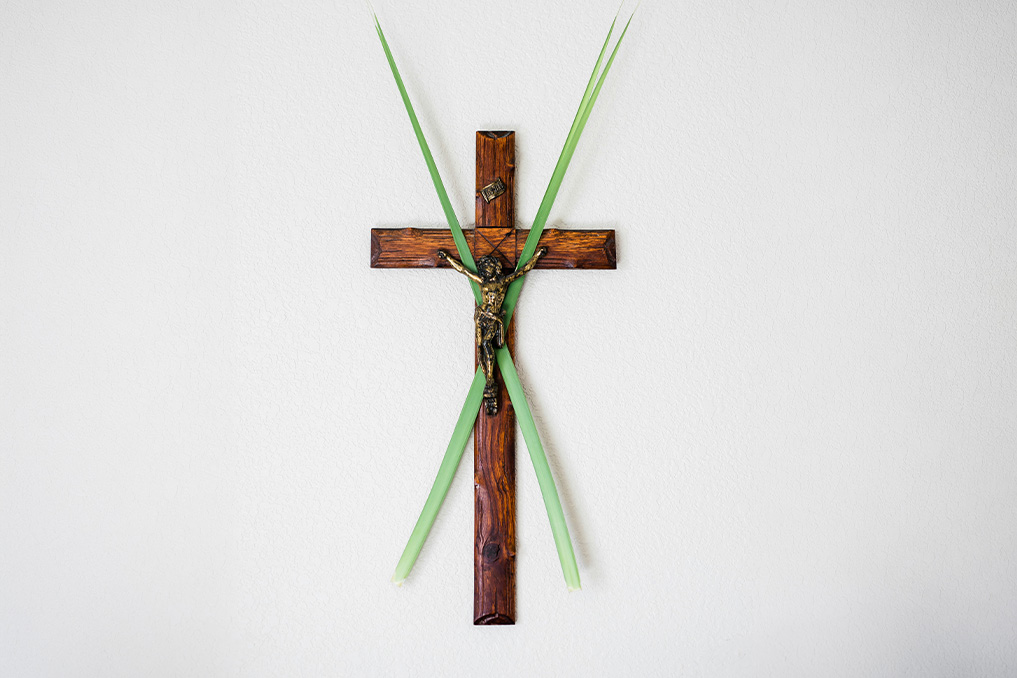 On Palm Sunday, keep the celebration alive after Mass by teaching your children to fold blessed palms into small crosses. Or simply display everyone’s palms in a vase or tied with ribbon on the table or mantle.